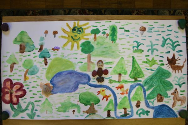 Po viktorinos trečiokai kūrybinėje laboratorijoje kūrė savo akmenėlio pasaką pagal Aido Jurašiaus knygą „Akmenukų pasakos“, klausėsi skaitomos šios knygos ištraukos. Kūrybinėje laboratorijoje spalvinome Baltijos jūros akmenėlius, iš jų kūrėm veikėjus – taip balti popierius lapai pavirto pasaka „Akmenėlio pasivaikščiojimas“.
