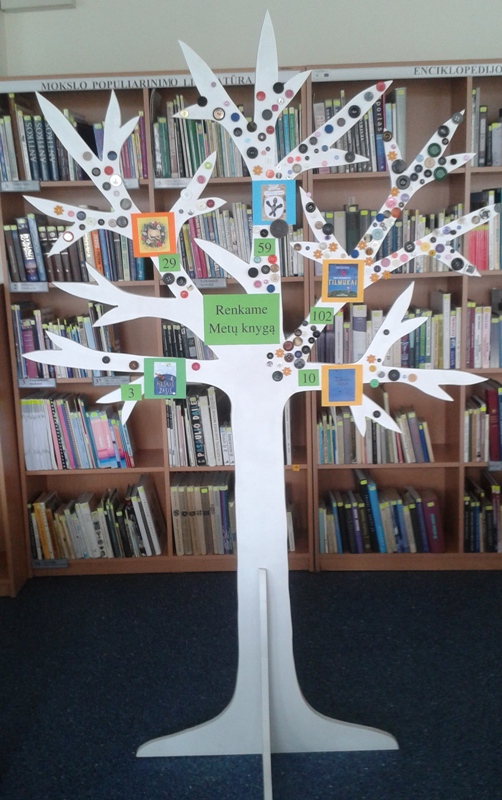 Apie Metų knygos rinkimų pabaigą užsukusiems į biblioteką praneša sagutėmis pražydęs medis. Rinkdami labiausiai patikusią knygą mokiniai balsavo iš namų atsineštomis sagutėmis, kurias lipino prie vienos iš penkių medžio šakų. Net 102 „žiedelius“ surinko Jurgos Baltrukonytės knyga „Filmukai“. Ji ir tapo „Vyturio“ progimnazijos „Metų knyga – 2016“. Įdomu, ar mūsų nuomonė sutaps su šalies rinkimų rezultatais? Jau greit sužinosime.
