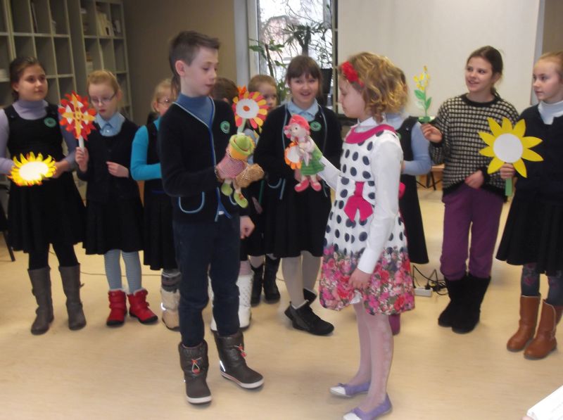 Vyr. bibliotekininkė Ugnė Trumpickaitė pristatė Rimvydo Stankevičiaus eiliuotą pasaką „Pūgos durys“, sukurtą mitologinių sakmių motyvais. 2014 m. ši knyga apdovanota kaip geriausia metų poezijos knyga. Pūgos sublokšti pakeleiviai Duobkasys, Išguitoji, Žemdirbys, Malūnininkas, Medkirtys pasakoja nutikimus, laumės užburia, užkeikia, pradangina. Medijų pagalba vaikai klausėsi paties autoriaus skaitomo teksto. Išraiškingai ir įtaigiai eiles deklamavo Ugnė. Užklydusi į renginį keista būtybė – gal ragana, gal laumė – paskleidė savo burtus ir dingo.