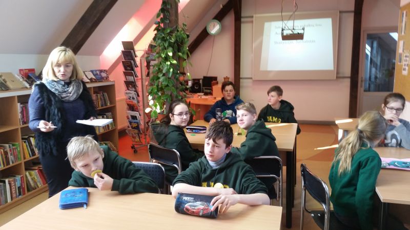 Laurynas Bauža: „Mes ėjome į skaityklą, ten kalbėjomės apie knygas. Sužinojome, kokia vaikų knyga išrinkta Lietuvoje – tai Evelinos Daciūtės „Laimė yra Lapė“. O mūsų mokykloje laimėjo knyga „Brolis, kurio nereikėjo“, ją parašė Gaja Guna Eklė. Komandiniame žaidime reikėjo įminti šaradą, ji nebuvo lengva, reikėjo pasukti galvą. Buvo užduotis – nurodyti knygų autorius. Bet mums sunkiai sekėsi. Tai įrodo, kad reikia skaityti knygas ir lavinti protą, kaupti žinias. Pasibaigus viktorinai ir susumavus visų komandų taškus, buvome apdovanoti skaniais saldainiais ir knygų skirtukais. O komanda „Broliai Ulfai“ už pirmą vietą gavo šokoladą ir saldainių. Aš tiek daug sužinojau ir užtrukau 45 minutes – vertinga pamoka. Visiems siūlau skaityti knygas, nes jas verta skaityti – žinias tobulini.“