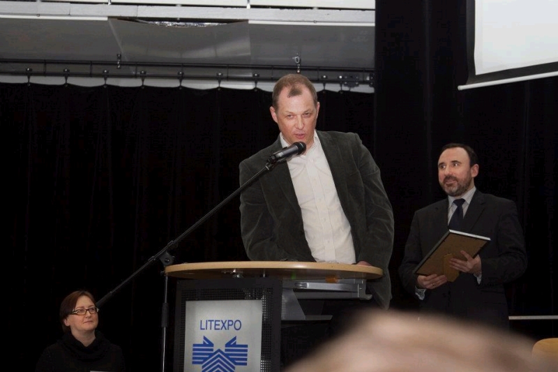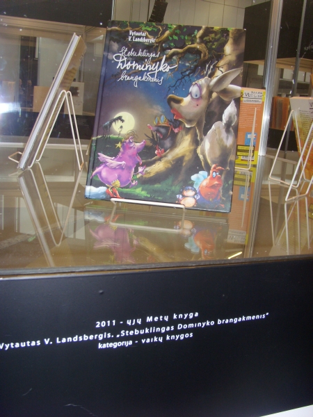 Tačiau apie viską iš eilės. Po sveikinimo kalbos Kultūros ministras Arūnas Gelūnas pirmiausiai apdovanojo Metų knygos vaikams kategorijoje išrinktą Vytauto V. Landsbergio knygą „Stebuklingas Dominyko brangakmenis“. Tai pirmoji šio autoriaus knyga, apdovanota Metų knygos rinkimuose.